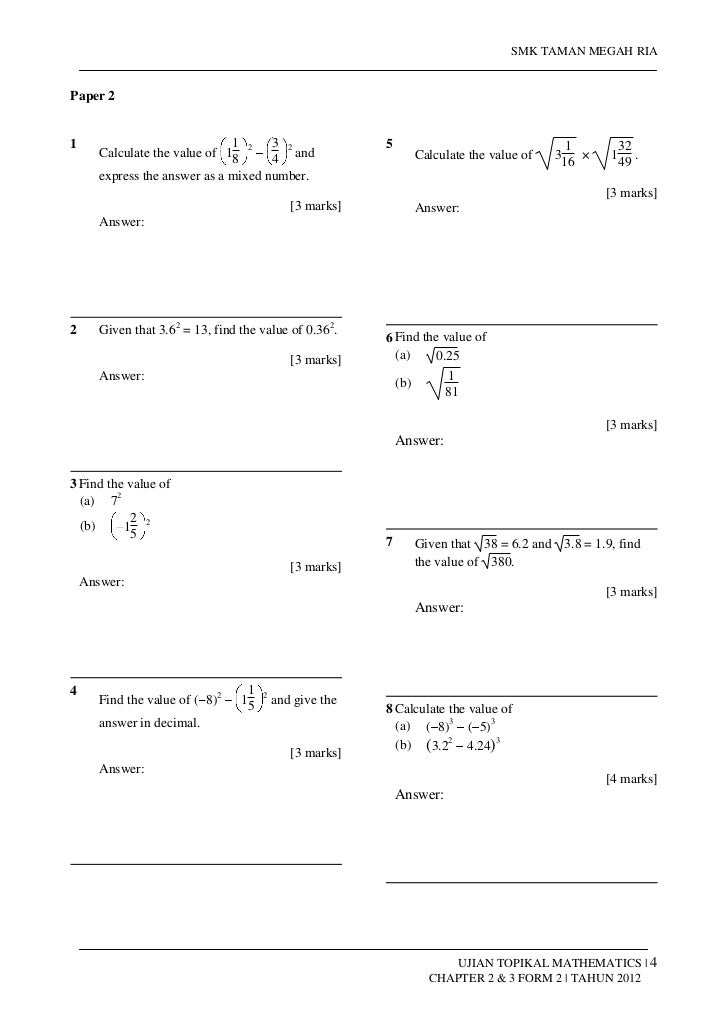 Fill mathematics form 2 exercise with answers pdf edit online. Question mathematics form 2 exercise kssm form 2 chapter 1 patterns and sequences part 1 otosection in the figure below abcd is a square. Form 1 kssm 01 rational numbers 02 factors and multiples 03 squares.
